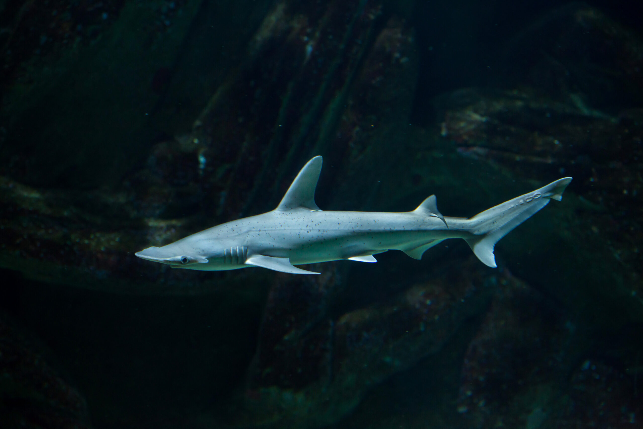 Scalloped hammerheads are the most common large hammerhead species in North Carolina waters. However, this species has been affected by overfishing, with 75 to 90 percent of its population extirpated — removed completely — in the Atlantic Ocean. For this reason, hammerheads are managed under lower quotas and higher size limits than other large coastal sharks. Three other large hammerhead species — the smooth, great and recently discovered Carolina hammerhead — occasionally can be found in North Carolina waters. The scalloped hammerhead is distinguished from smooth and great hammerheads by the shape of its “hammer,” which is curved and has a notch in the center. The Carolina hammerhead is visually indistinguishable from the scalloped hammerhead, and can only be told apart genetically or by counting its vertebrae — Carolina hammerheads have fewer than scalloped hammerheads.